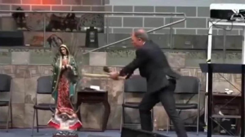 VIDEO: Pastor destruye figura de la Virgen con un hacha durante su discurso y genera polémica