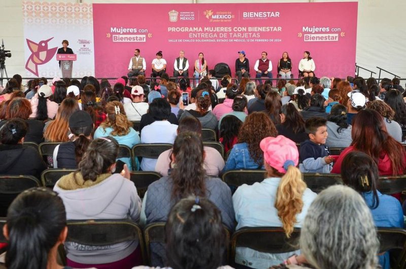 VALLE DE CHALCO SOLIDARIDAD, Estado de México.- Como parte de su compromiso de fortalecer el programa integral Mujeres con Bienestar, la Gobernadora del Estado de México, Delfina Gómez Álvarez arrancó la entrega de 250 mil tarjetas a mujeres mexiquenses que se inscribieron en una segunda etapa, quienes recibirán un depósito de 7 mil 500 pesos correspondientes a tres bimestres y podrán acceder a una docena de beneficios en salud, educación y asistencia para garantizar su desarrollo.