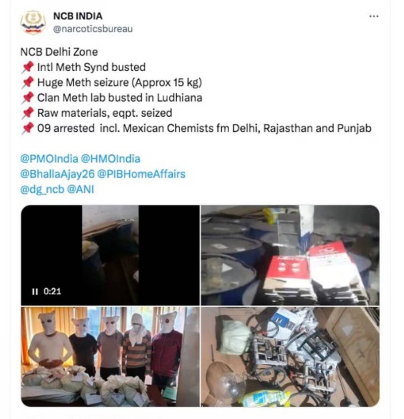 En la India, el Buró de Control Antinarcóticos (NCB por sus siglas en inglés) desmanteló una célula delictiva que se dedicaba a la producción y distribución de metanfetaminas.