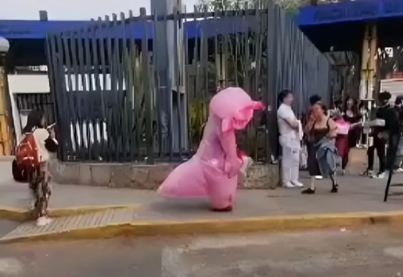 El video, compartido en la cuenta de TikTok @soyelpeps27, captura la triste escena donde un joven, vestido con una botarga de ajolote color rosa, baja la cabeza con pesar tras ser rechazado por su amada. La canción de fondo, “Yo no nací para amar”, de Juan Gabriel, añade un poco de melancolía a la situación.