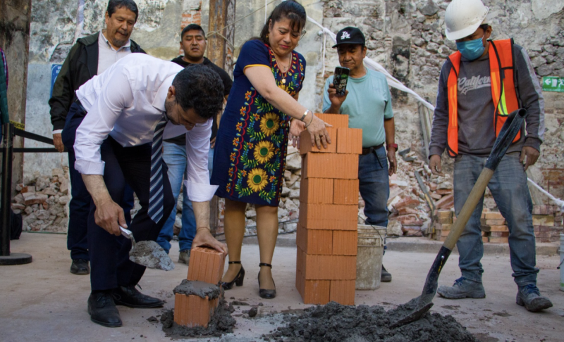 Coloca Martí Batres primera piedra de Unidad Habitacional Alhóndiga 7, en el Centro Histórico
