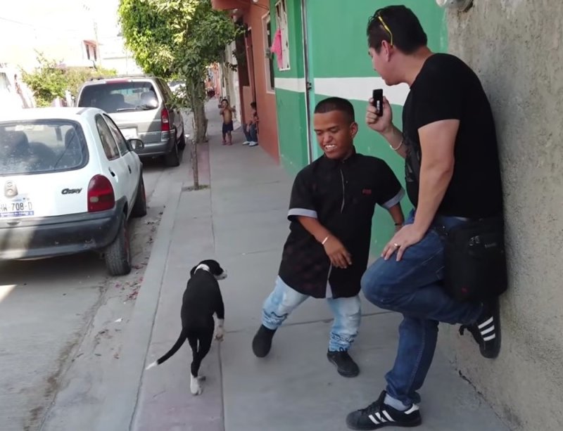De esta forma, mientras José Eduardo Rodríguez, nombre real de Medio Metro estaba respondiendo un perrito se le acercó e intentaba oler las manos del joven, quien solo las cambiaba de lugar para evitarlo.