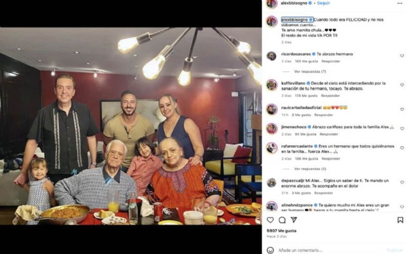 Durante la reciente emisión del programa “Al Extremo”, Alex Bisogno agradeció las muestras de apoyo de los fans a través de redes sociales ante los momentos de angustia y tristeza que invaden a su familia por el delicado estado de salud de su hermano, Daniel, y su la muerte de su mamá tan sólo unas semanas después de que fuera hospitalizado.