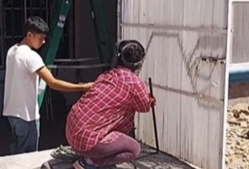 Madre trabaja como asistente de albañil para sacar adelante a su familia