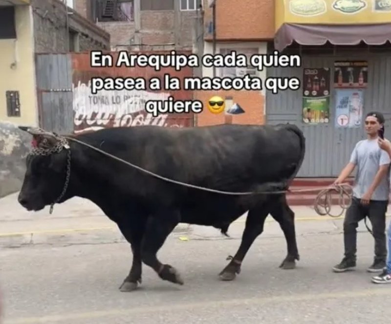 Por medio de redes sociales fue difundido el video de un joven paseando a su toro mascota como si fuera un perro en Arequipa, Perú.