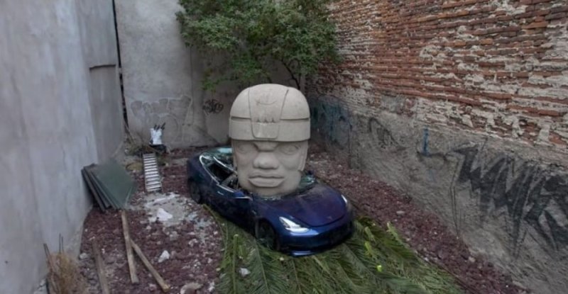 La reciente aparición de un Tesla aplastado por una cabeza Olmeca en la Colonia Roma de la Ciudad de México ha capturado la atención de TODOS los usuarios de redes sociales