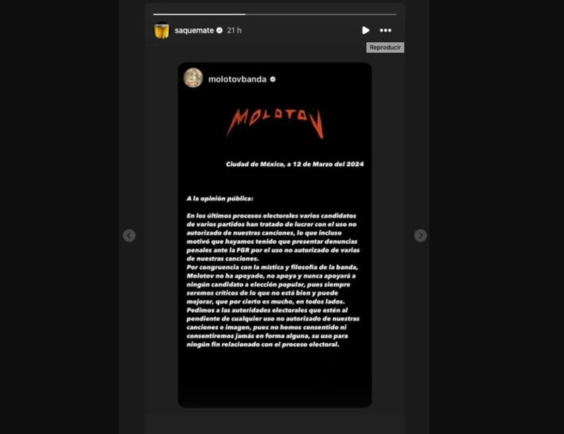 "Molotov no ha apoyado, no apoya y nunca apoyará a ningún candidato a elección popular". pic.twitter.com/8KjwgaLitg