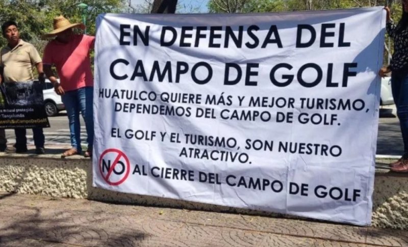 Con pancartas y mensajes como “No al cierre del campo de golf” y “Con el campo de golf funcionando, mi familia alimentando”, los inconformes rechazaron la declaración del sitio como área protegida, pues aseguraron que la vocación de Huatulco es turística y que necesita del campo de golf para atraer “más y mejor turismo”.