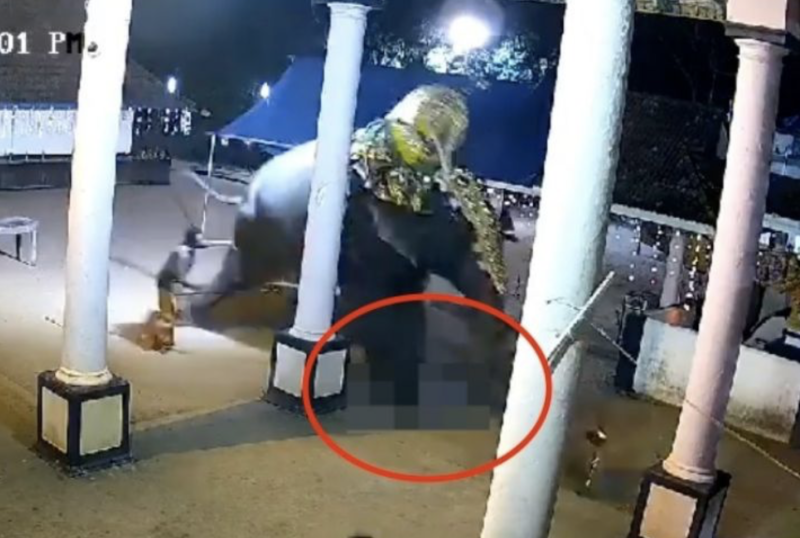En redes sociales se volvió viral un video que muestra el momento exacto en el que un hombre perdió la vida, luego de ser aplastado por un enorme elefantemacho en la ciudad de Puthuppally, en la India. En las imágenes se ve que el sujeto estaba ayudando al domador del animal- quien trataba de realizar una presentación frente a la multitud- cuando cayó al suelo y el mamífero se aproximó a él y lo piso con una de sus patas.