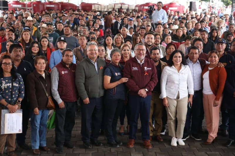 En un evento realizado en el municipio de Texcoco, a nombre de la Gobernadora Delfina Gómez Álvarez se entregaron invernaderos, molinos, maquinaria, cisternas de agua de 5 mil y 10 mil litros, tractores, sistemas de captación de agua y gallinas de postura, entre otros insumos.