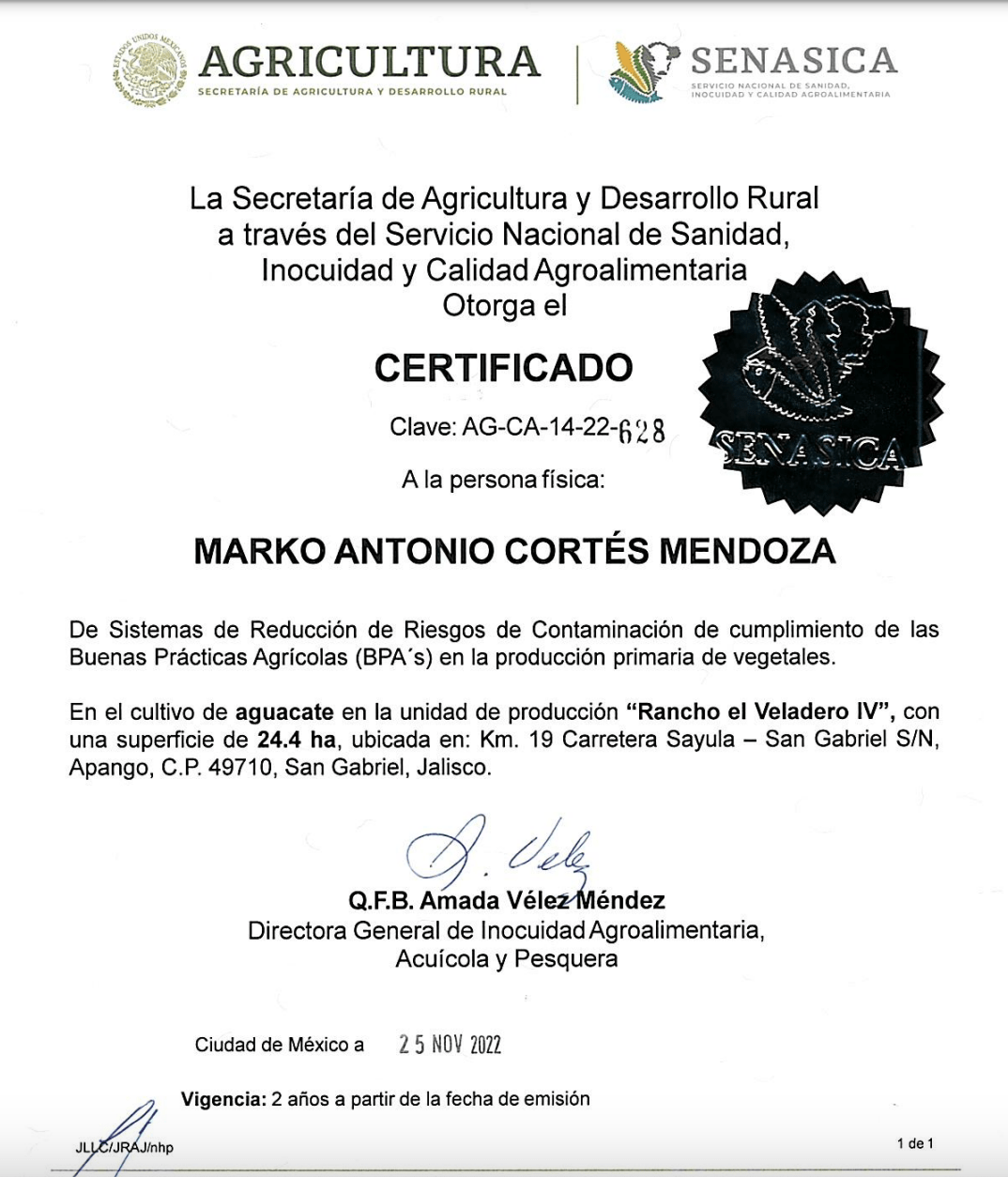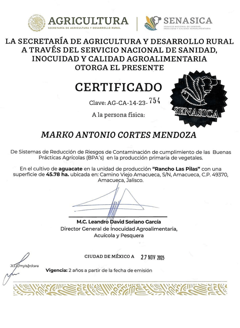 Ambos ranchos fueron certificados por el Servicio Nacional de Sanidad, Inocuidad y Calidad Agroalimentaria (Senasica) en 2022 y 2023, respectivamente.