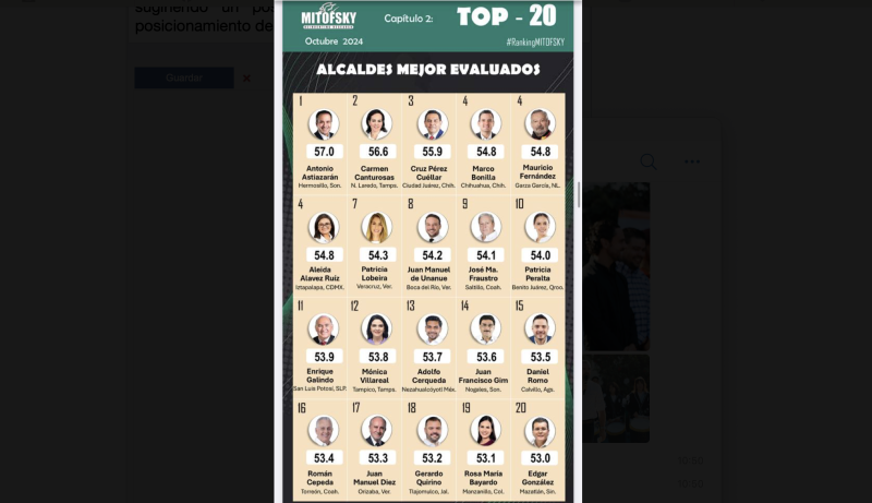 En la reciente encuesta de aprobación ciudadana realizada por Mitofsky, se evaluó el desempeño de 150 alcaldes y alcaldesas de las principales ciudades de México durante el mes de octubre.