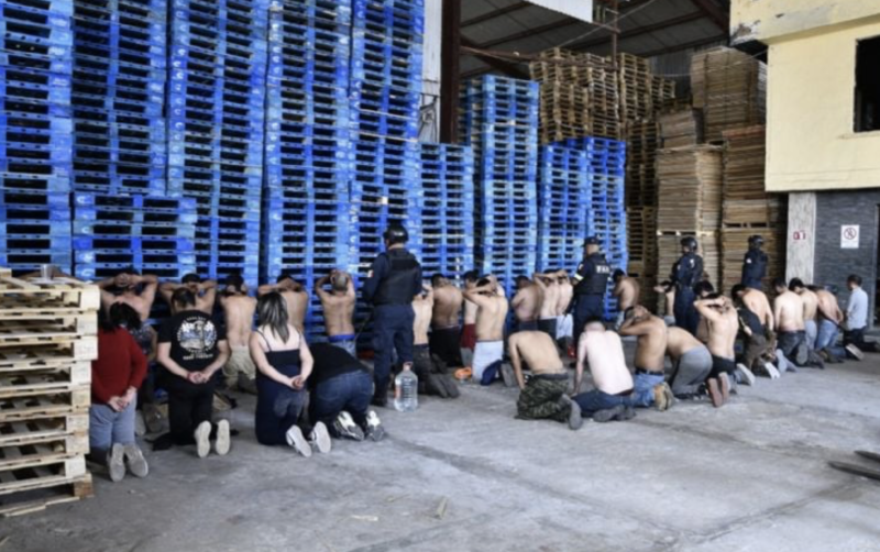 Las 42 personas: 31 hombres, ocho mujeres y tres menores de edad, que se encontraban dentro de la propiedad al momento del cateo, fueron detenidas y trasladadas a la agencia del Ministerio Público (MP) para verificar su identidad y determinar su situación jurídica.