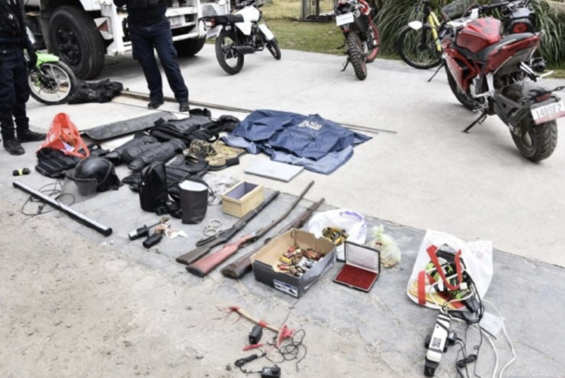 El secretario de Seguridad estatal, Cristóbal Castañeda, indicó que también se decomisaron 91 mil 50 pesos en efectivo, cinco chequeras, un escudo de plástico color negro, un equipo anti-disturbio, equipo táctico, electrónico y de radiocomunicación, dos escopetas, una escopeta hechiza y múltiples cartuchos de diversos calibres.