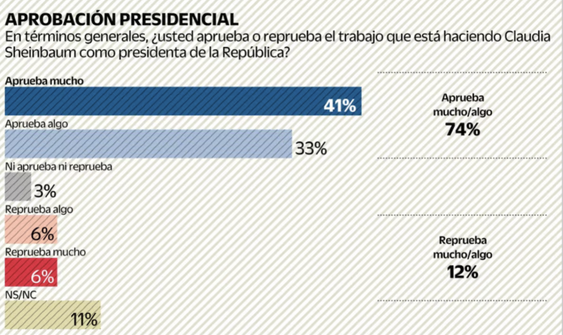 A menos de 2 meses de asumir el cargo, Sheinbaum tiene aprobación del 74%: Buendía&Márquez