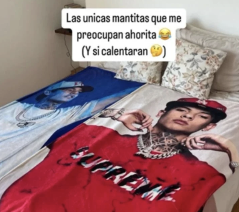 El cantante compartió una fotografía de una cama, con dos cobijas estampadas con su propia fotografía. “Las únicas mantitas que me preocupan ahorita”, se leía en la imagen, junto con un emoji de risa. También añadió entre paréntesis: “¿Y si calentarán?”.