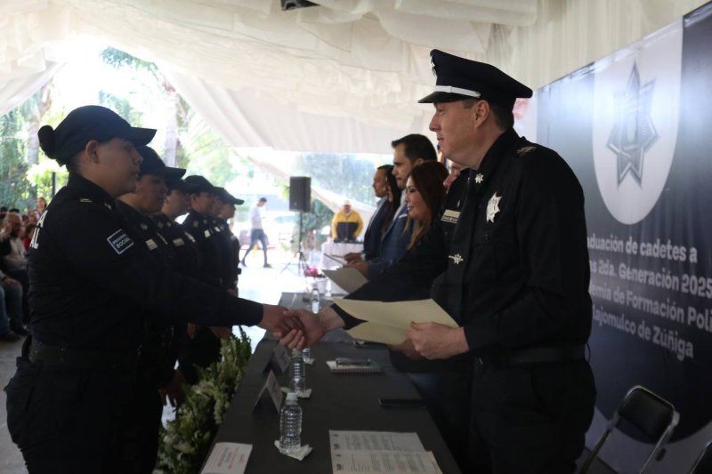 “Ese compromiso será su brújula en los momentos más difíciles, cuando enfrenten retos y decisiones pondrán a prueba su integridad y su determinación. Hoy, al recibir su placa y su uniforme, recuerden que cada uno de ustedes representa un símbolo de esperanza para Tlajomulco, ustedes son la cara de la justicia y la seguridad en nuestras calles. La ciudadanía espera de ustedes honestidad, transparencia y un trabajo incansable por el bien común” dijo el titular de la policía.