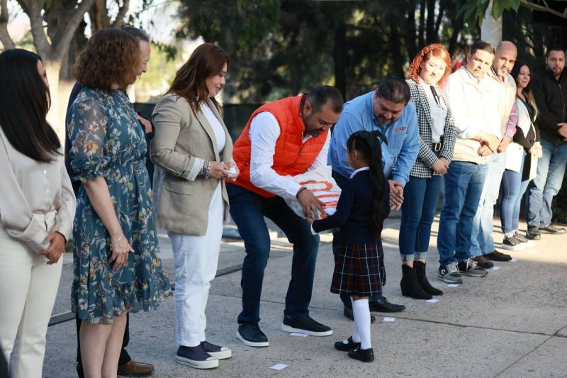 La entrega de estos importantes materiales fue encabezada por Gerardo Quirino Velázquez Chávez, alcalde de Tlajomulco, quien ante padres de familia, profesores, niñas y niños de la escuela Miguel Gómez Portugal, en el Fraccionamiento Villas Terranova, en Lomas del Sur, destacó la importancia de no escatimar esfuerzos y recursos para apoyar la educación, ya que es el mejor camino para construir el futuro.
