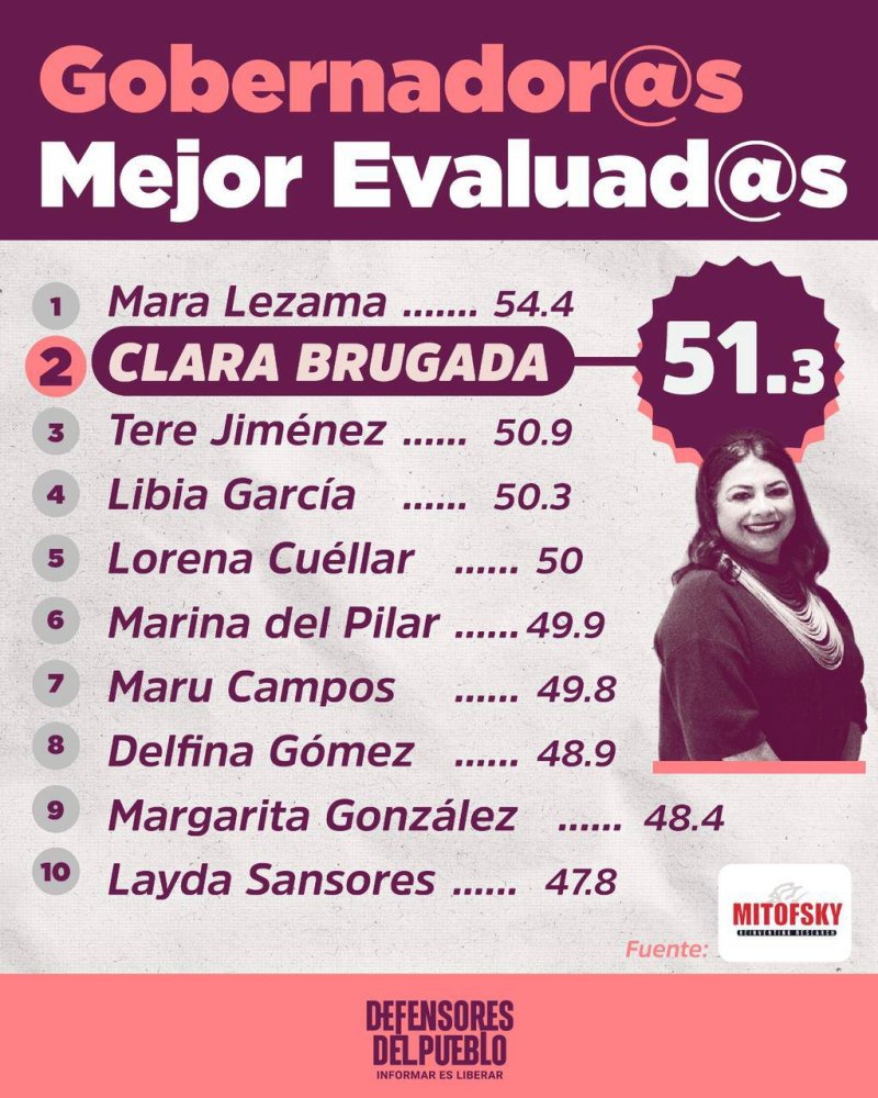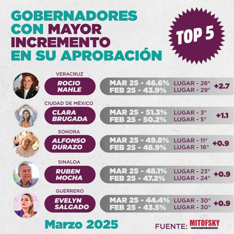 La mejora en la aprobación de Brugada coincide con un contexto en el que la media nacional de aprobación para los gobernadores también ha mostrado un incremento, lo que sugiere un cambio positivo en la percepción de la gobernanza en diversas entidades del país.