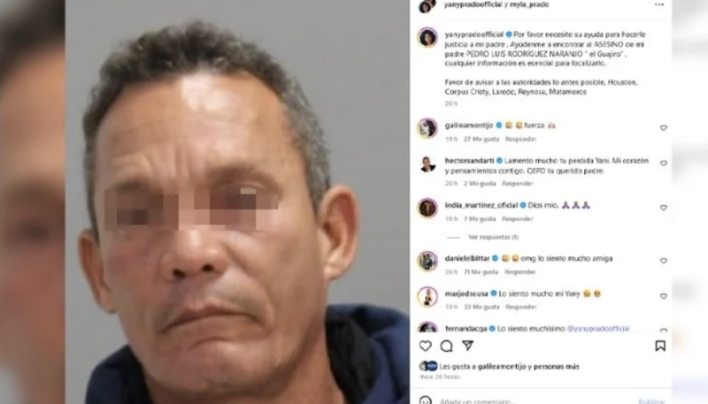 Acto seguido, la actriz de unitarios como La Rosa de Guadalupe señaló que el presunto asesino de su padre responde al nombre de Pedro Luis "N", alias "El Guajiro", quien asegura es un indocumentado cubano que vive en Estados Unidos y México. "Residía de indocumentado en Texas, después de cometer el delito, robó el auto de mi padre y manejó en dirección a la frontera de Reynosa/Matamoros", se lee en una segunda imagen compartida por Prado.