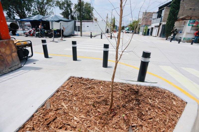 Como parte del enfoque integral de las obras, también se construyeron banquetas accesibles para personas con discapacidad, se instalaron nuevos semáforos para mejorar la seguridad vial y se sembraron árboles que contribuirán a la regeneración del entorno urbano.