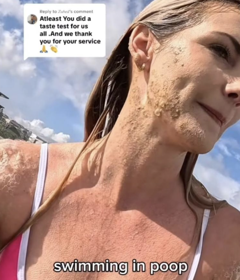 Influencer presume nadar entre espuma marina, pero eran aguas negras con heces fecales