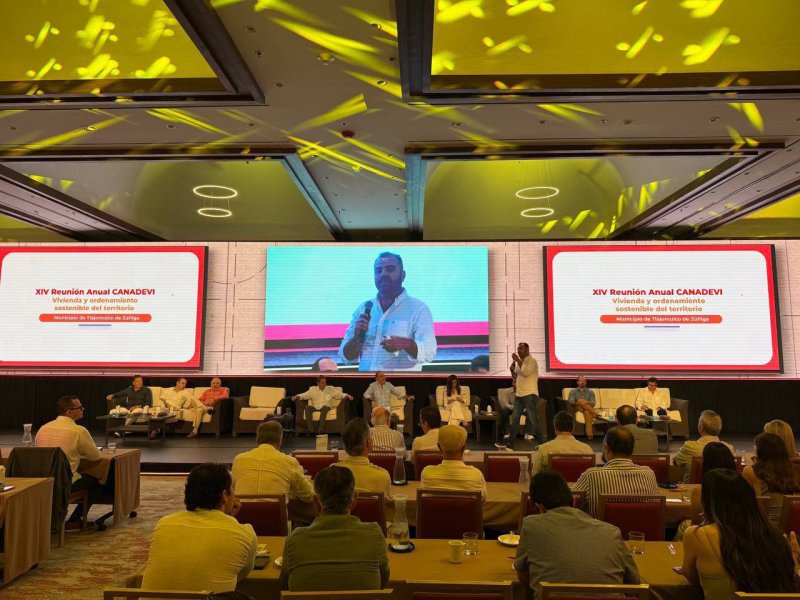 Tlajomulco de Zúñiga; 28 de agosto de 2025. Con el objetivo de presentar el Plan de Recuperación de Vivienda de Tlajomulco, el presidente municipal, Gerardo Quirino Velázquez Chávez, participó en la XIV Reunión Anual de la Cámara Nacional de la Industria de Desarrollo y Promoción de Vivienda (CANADEVI) Jalisco, encabezada por su presidente, Joaquín Vaca Elguero.
