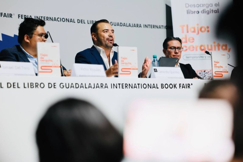 El presidente municipal de Tlajomulco, Gerardo Quirino Velázquez Chávez, presentó este miércoles el libro “Tlajo: de cerquita, tempranito y con la gente” en el Salón de Profesionales de la Feria Internacional del Libro (FIL), considerada la cita editorial más importante del mundo hispano.