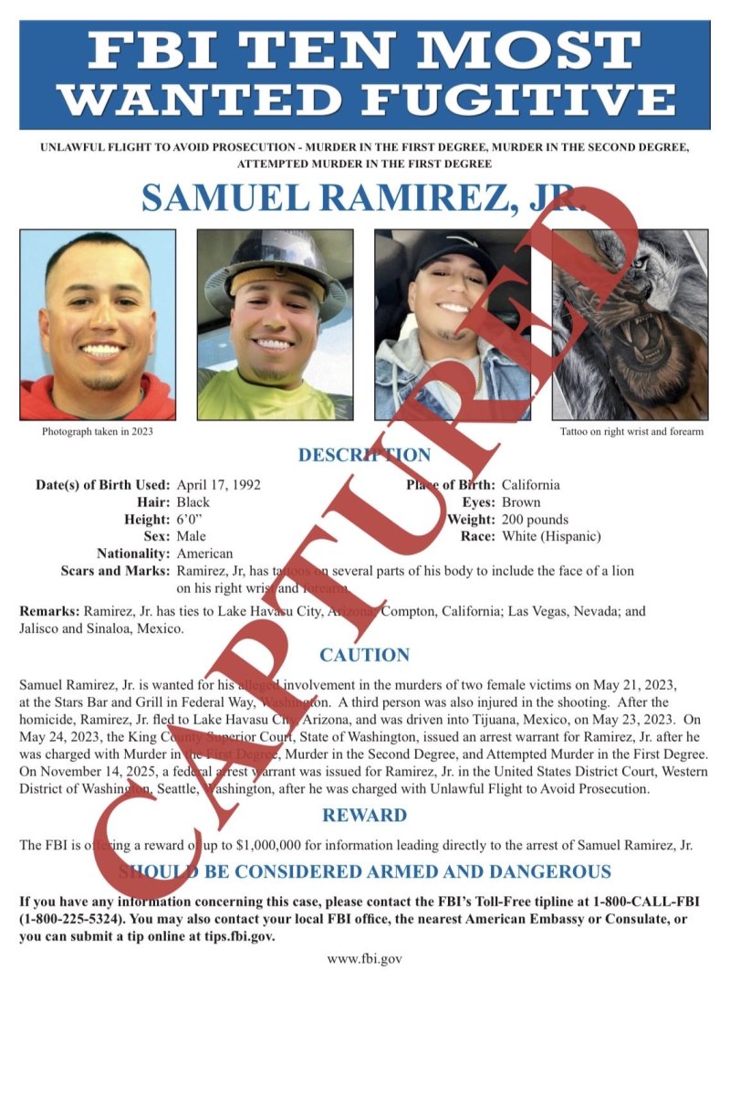 De acuerdo con reportes oficiales, el hombre era buscado por su presunta participación en el asesinato de dos mujeres y las heridas causadas a otra persona durante un tiroteo ocurrido el 21 de mayo de 2023 en un bar de Federal Way, en el estado de Washington. Tras el ataque, Ramírez Jr. habría huido del país para evitar enfrentar a la justicia.